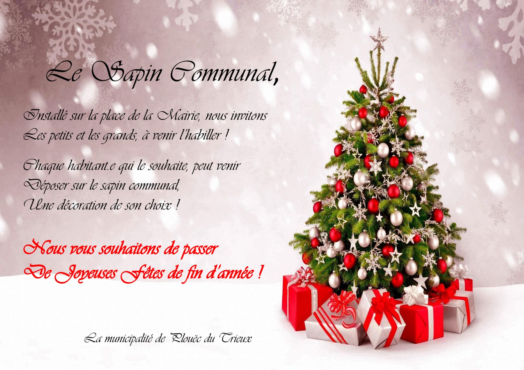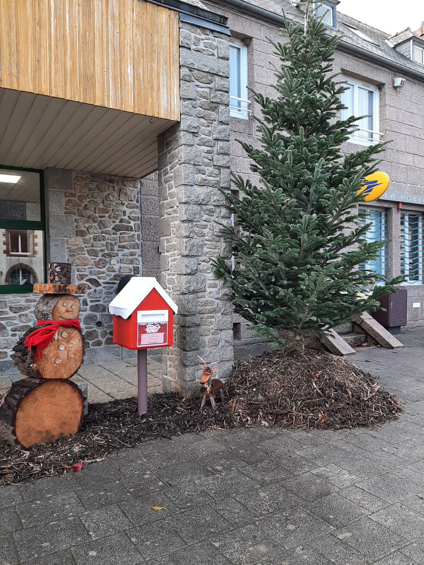 Plouëc en fête pour Noël : sapin à décorer et boite au lettres du Père Noël devant la mairie.