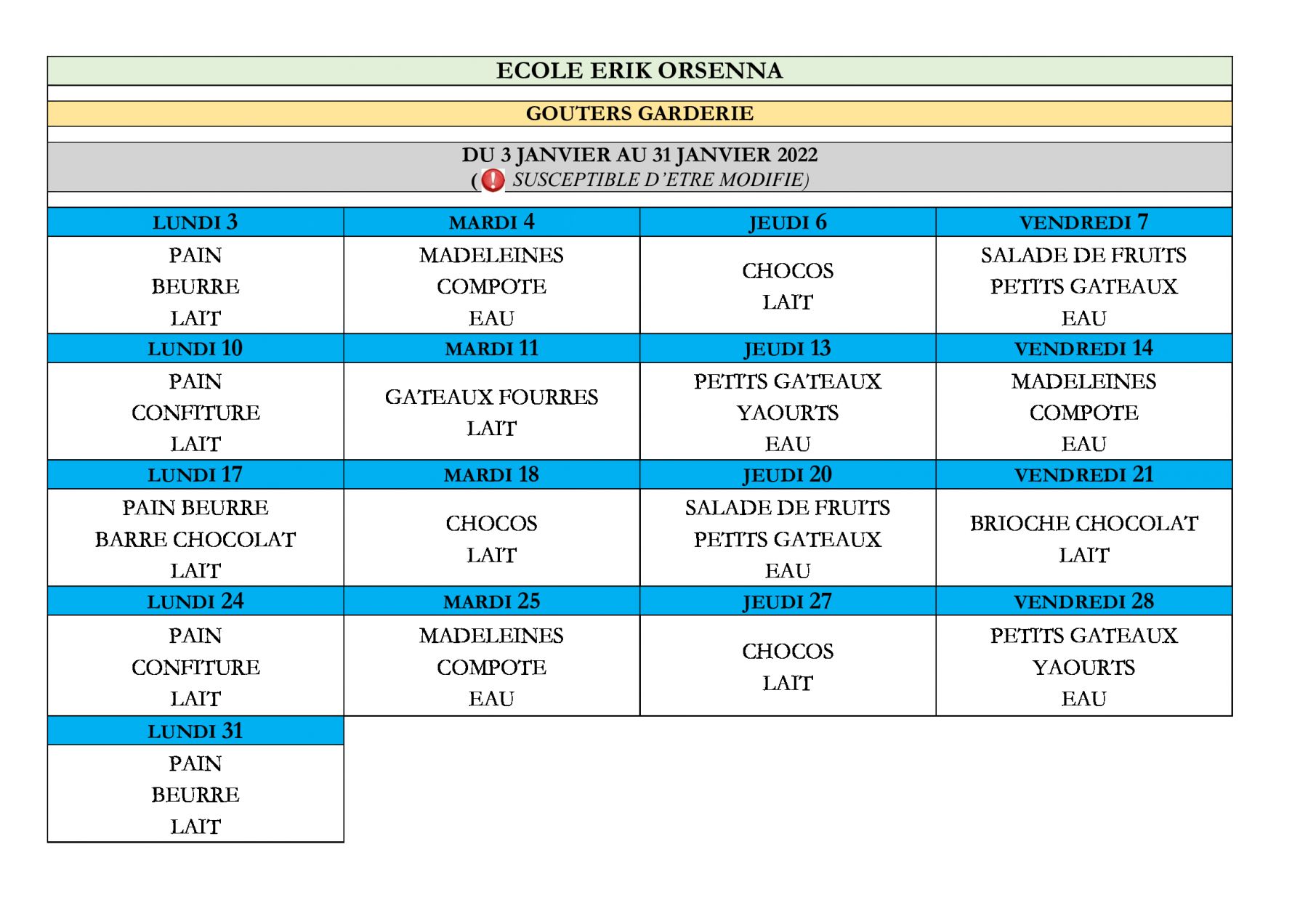 Goûters janvier 2022